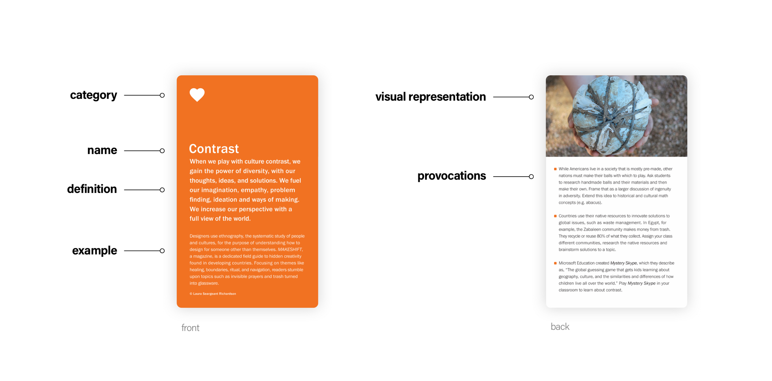 This existing set of 54 cards is lensed toward parents and teachers to inspire them in the powers of play for children. Now, more than ever before, kids will need play to be able to adapt to the incredible rate of change thrust upon them. Based on a decade of research, Laura’s articles on this topic have appeared in Fast Co. Design, the Atlantic, and Parents Magazine, to name a few.